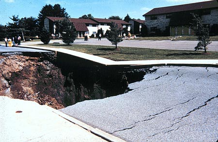 Rencana dibangunnya Kentucky Trimodal Transpark segera dibatalkan saat terjadi tanah ambles seluas 200 kaki di Bowling Green, Kentucky. Di daerah ini memang dikenal rawan tanah ambles dan setiap saat bisa terjadi hal seperti ini lagi. Ini membuat pembangunan di seluruh area di sini sangat beresiko.